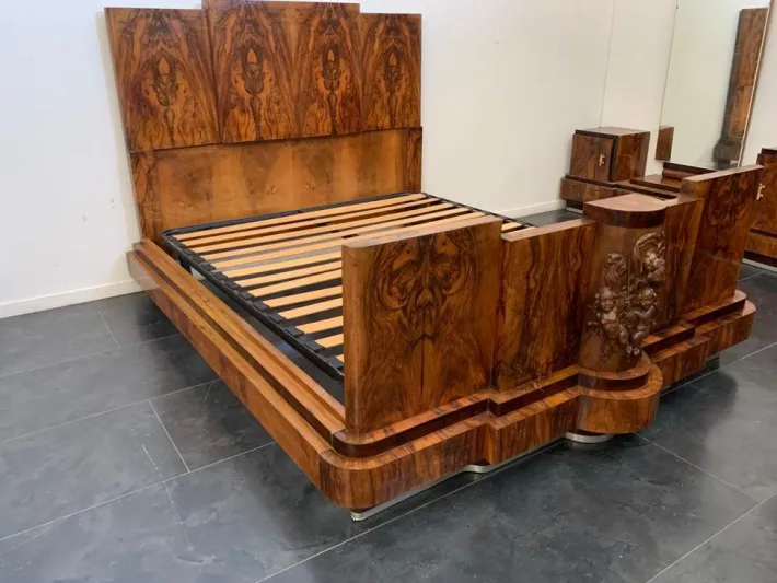 The bed on the front presents a triumph of putti playing, finely carved.