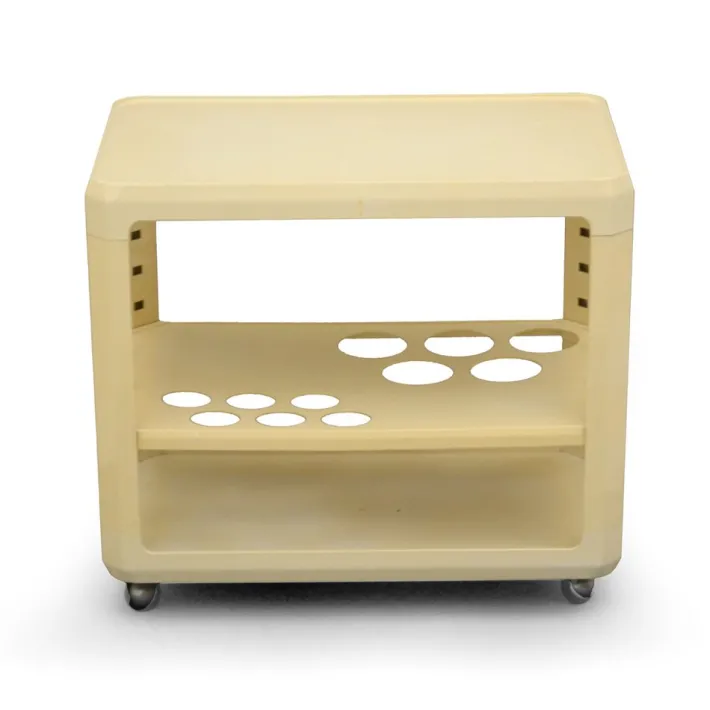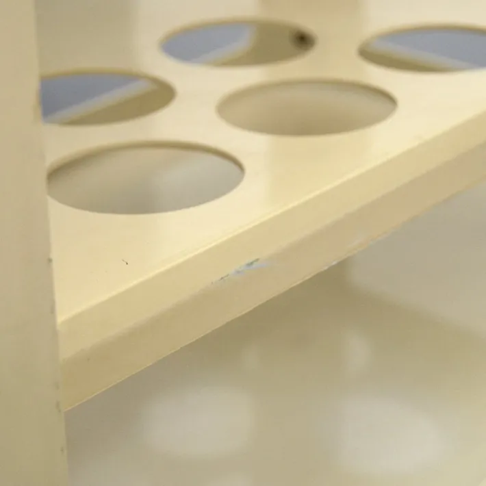 Intermediate shelf adjustable in height, with holes for bottles and glasses