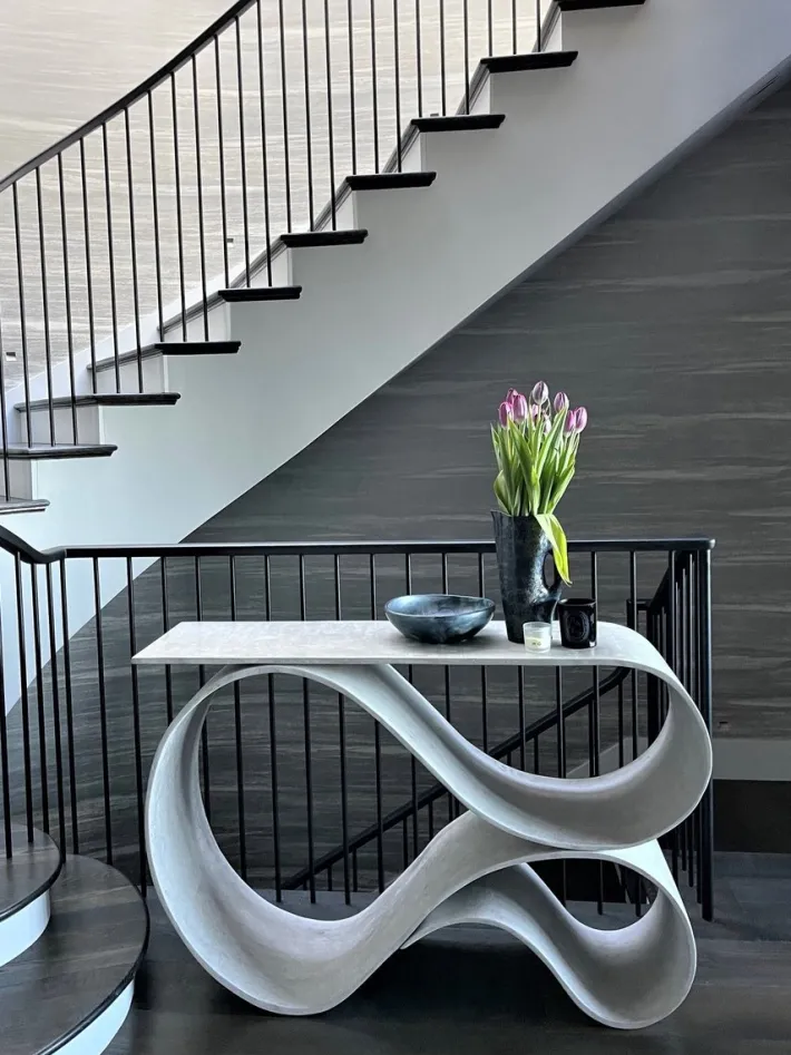 The idea behind the Whorl series was to make a hand-crafted piece that has presence as both sculpture and functional furniture. Aronowitz saw an opportunity as he says to “explore the material’s unique structural properties to express a fluid form, in contrast to the dense and heavy associations that we have with concrete.”