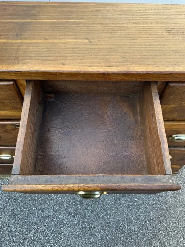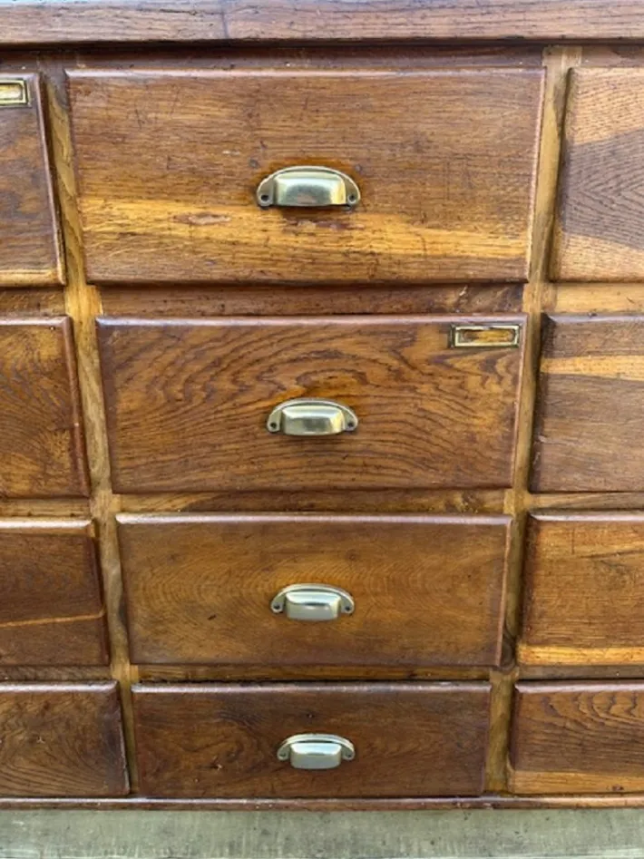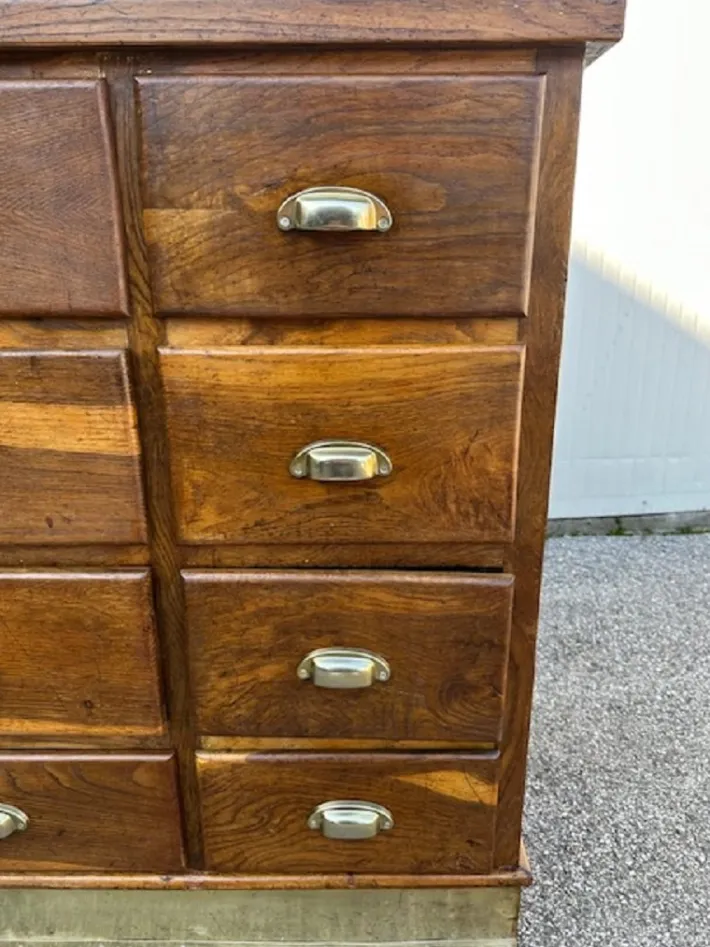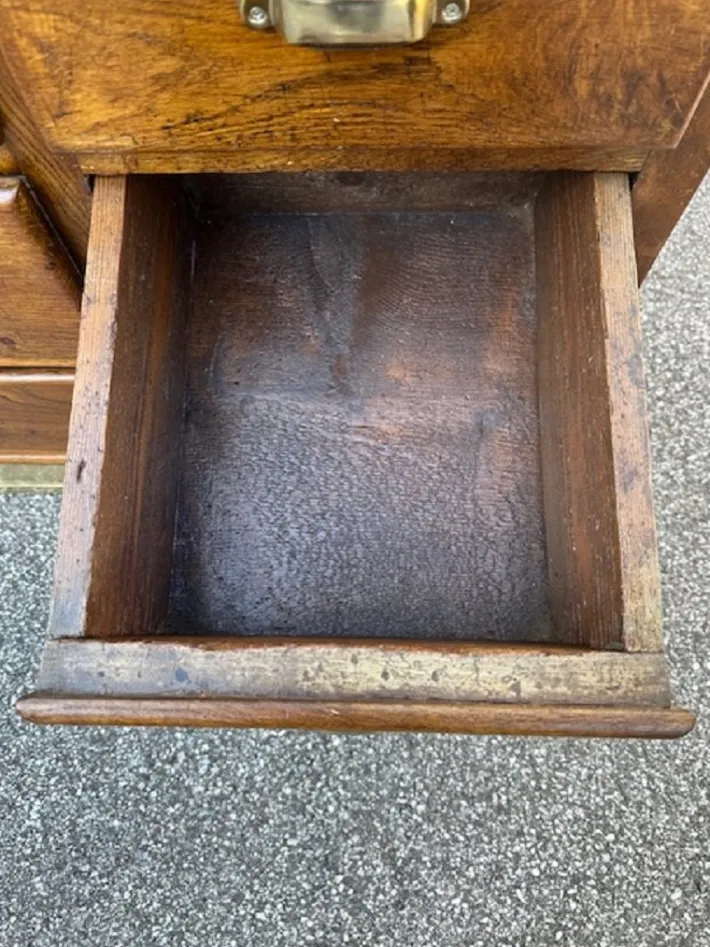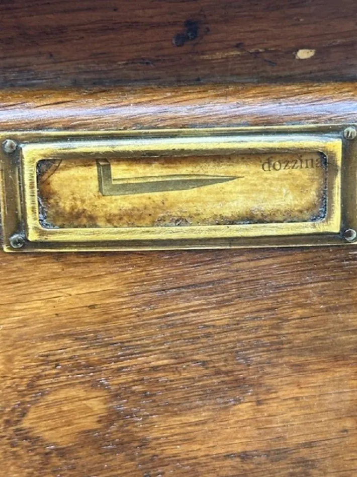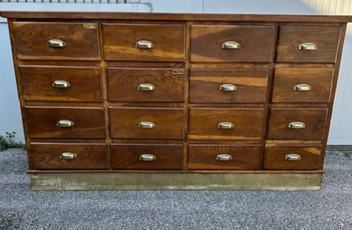 The piece of furniture has been restored and polished with shellac, sanitized and cleaned. Ready to be set in.